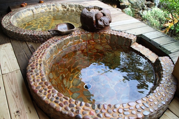 一樓戶外溫泉池(露天風呂),因水質中富含鐵質,在流入溫泉池後,幾分鐘內與空氣氧化產生氧化鐵,使得溫泉水的顏色變成金黃色,因而有「黃金泉」美名。據說,這種富含鐵質礦物質的溫泉,有活絡筋骨的功效,多泡更有助生男。