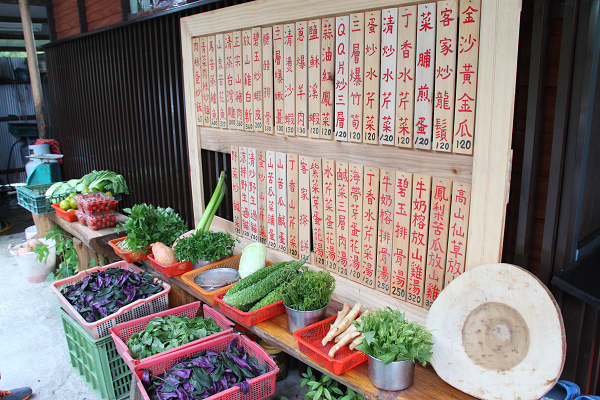 坐在車子內的妻子說她當天比較屬意吃中餐,而且是有炒青菜的餐廳,當時心想,陽明山上有中式、炒青菜的餐廳,不多集中在竹子湖嗎?但是吃過幾次竹子湖的中式餐廳,感覺菜色大都有些油膩,就在閃過這個念頭的時候,忽然在平菁街的路上看到一家掛著「炒青菜」招牌的餐廳,於是我匆忙停好車,自己一個人先進餐廳一探究竟,看看是不是真正合我們家的口味!