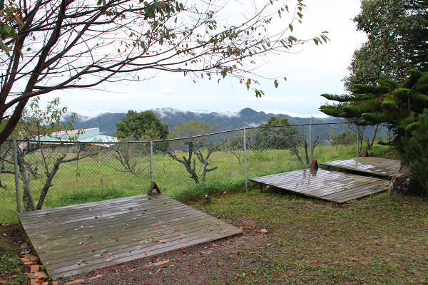 俠雲山莊的露營場,目前設置了五塊木板基座,每一塊約兩坪左右,位置正好面對視野最好的拉拉山山景,眺望的景色極佳,在拉拉這塊區域,幾乎無地能出其右。而衛浴設施就在露營區附近,便利性足夠!