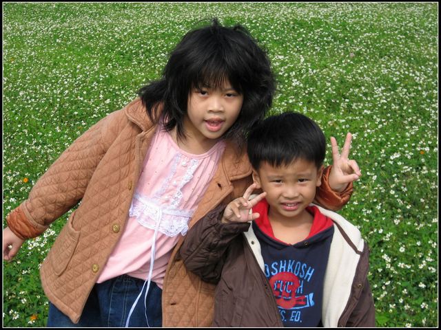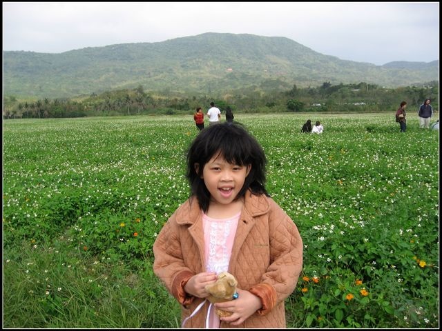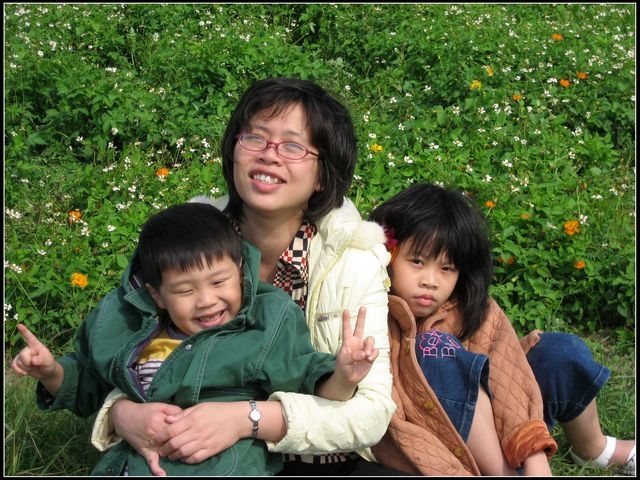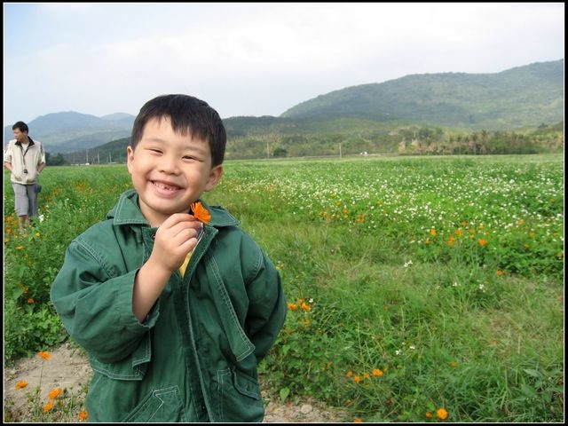 離開佳樂水後,我們還到滿州鄉公所所在地附近農人栽種的花圃去看花田,可惜這裡的花大都凋謝,但是僅剩的一些小花,搭配周遭的景觀,孩子們在這裡拍起照來,感覺還是很愉快。
