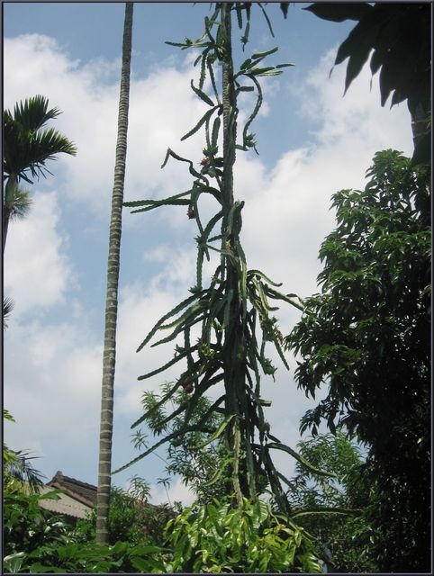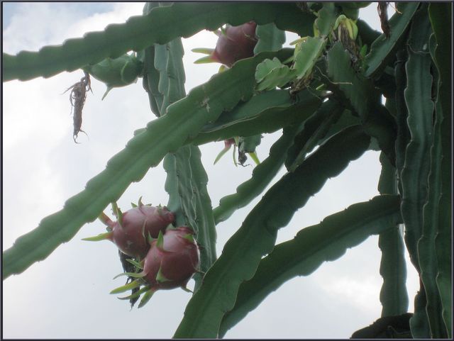 ↑火龍果攀附著檳榔樹長,高聳雲霄。