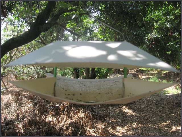 ↑這是果園內用來黏捉果蠅的道具。
