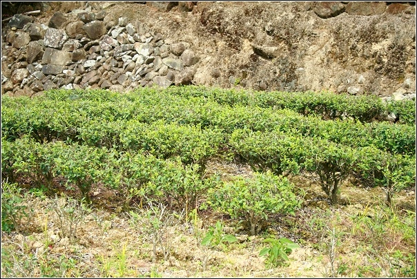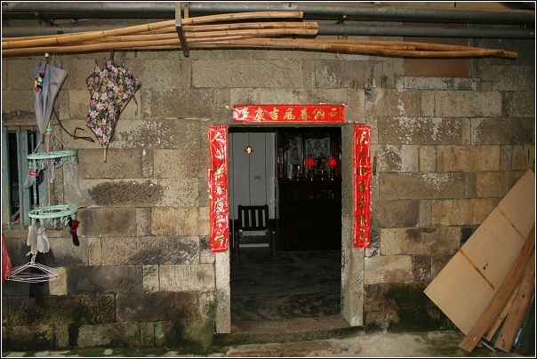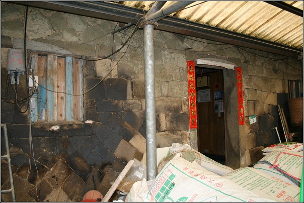 古早的坪林,石頭遠比瓦片來得便宜,因此在茶鄉坪林,時而發現用石頭堆砌成的房子或是圍牆、梯田。當年南山寺的部分建材便是用石頭砌成,現在在南山寺後方民宅,也可發現這樣的石材建築。導覽跟我說,大戶人家建造的石房,石材會排列得很整齊,石塊大小也會一致,普通人家則沒這麼講究,因此石房牆上的石材常有參差不齊的排列方式。