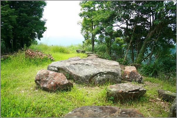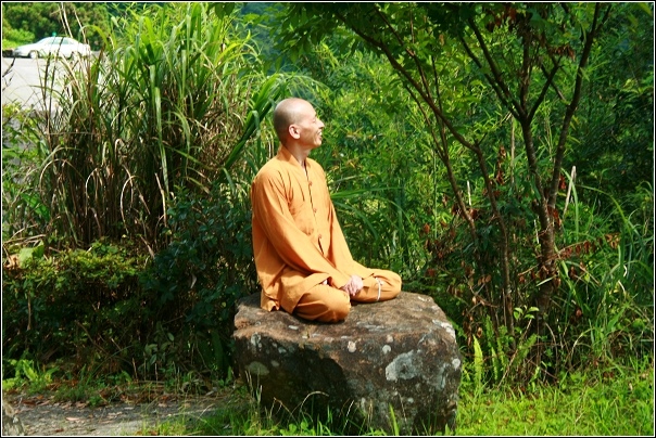 主持師父是個和善健談的長者,他帶著我步行至寺前一處平台,此地端放數顆大石,師父說:這裡是打坐、禪修的好所在,可以和大自然結為一體,博得更多修練的元素。