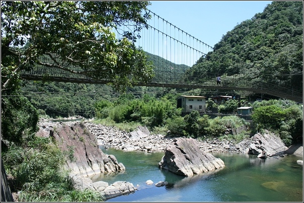 走在虎寮潭吊橋上,不僅引人發思古之幽情,仔細觀察溪中的魚兒,隻隻肥碩健康地悠游著,其中不乏成群香魚、苦花,偶而抬頭望向對岸山頭,還會瞧見綠油油的茶田美景,藍天、碧潭、綠茶園,真是一幅美麗的景緻,您來過嗎?虎寮潭美景等您來探訪!