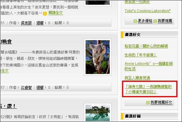 媽咪看完海角七號電影後,對導演魏德聖充滿好奇,因為他想知道,為什麼魏導會選擇在我家附近的電線桿拍攝阿嘉離開台北的畫面?於是她很有心的到圖書館借了魏導過往的著作─小導演失業日記,前後研讀兩天便把他看完了!