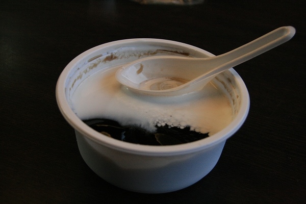 仙草龍的招牌,也是最受顧客歡迎的品類,就是它的仙草布丁,每個布丁附送一個奶油球,加入仙草中,口感更佳。