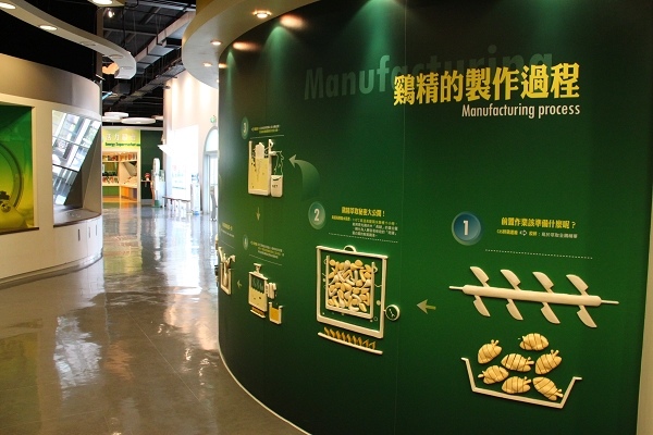 品牌區還有一個水簾式養殖魔幻劇場,是利用虛擬影像和真實模型疊合的動畫劇場秀,可以瞭解製作雞精使用的雞隻養殖過程。看過介紹過,您會發現,這裡生活的雞隻真是幸福,只是仍逃不過被宰殺拿來做雞精的命運。