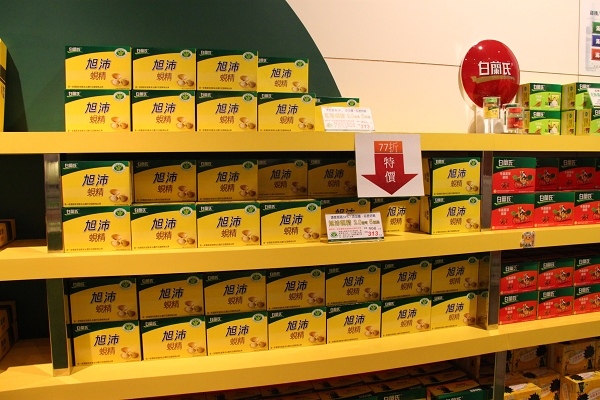 歷史區還展示不同時期在台生產的雞精包裝,都是目前市面上看不到的古董囉!