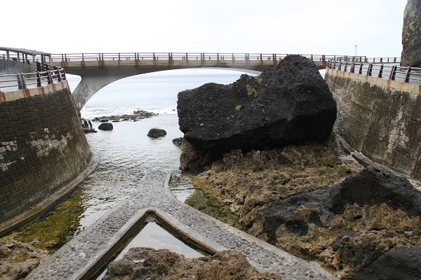 馬蹄橋位於綠島西南方龜灣附近,是環島公路必經的橋樑,若從南寮漁港、大街往此,首先會經過烏鬼洞,這一帶屬於馬蹄嶺斷崖,岩石都由火山岩所構成。