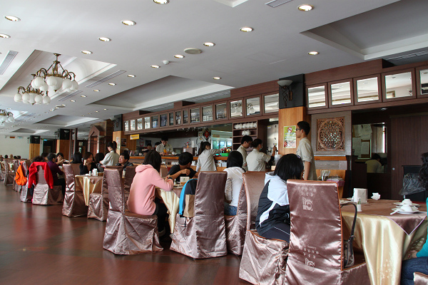 二樓景觀廳可以享用港式料理,餐點每盤大約有三個點心,每盤的價格大約在100元上下,當然也可以搭配點幾盤青菜或非港式點心。其實,除了港式飲茶料理外,這裡也有合菜,很適合公司、家族、朋友聚餐。
