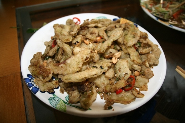 走進餐廳,裝飾很普通,也沒有迷人的布置,然而這裡的菜色,有不少道菜都是主人所精心研發,是其他地方不一定吃得到的菜餚,除了陽明山山泉水飼養的高山鱸魚外,每次來這裡一定要點的鹹酥山苦瓜便是一道老闆自行研發的人間美味!另外,新鮮的野菜、水蓮、土雞肉、山豬肉、梅粉地瓜等,也都是獨具風味、令人垂涎的餐點。