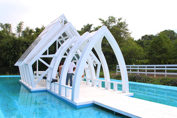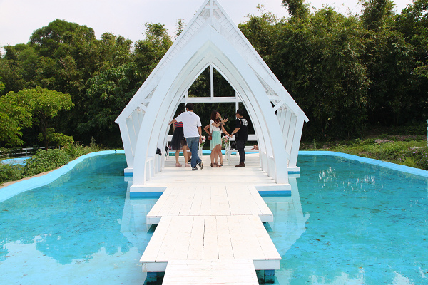 這裡的景色很美,尤其是風車與教堂,藍白色調看起來很吸引人,所以園方也開放外租當作拍攝婚紗照場地。