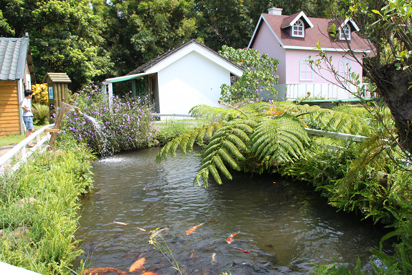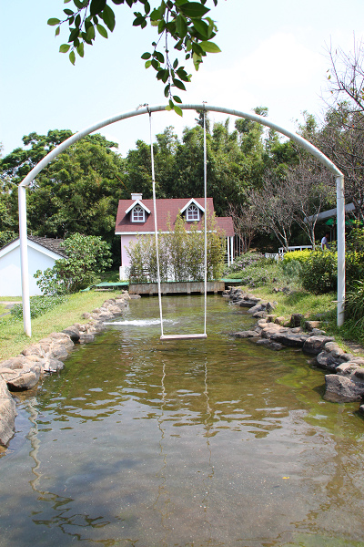 停好車,一走進大屯花卉農園,就看到鞦韆與魚池,孩子看到這玩意兒,肯定興致就來了!