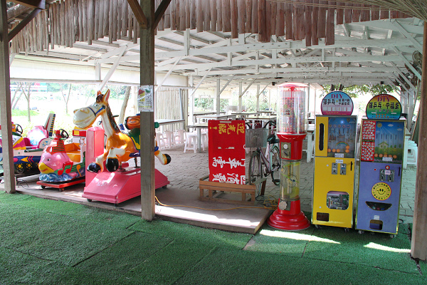 園裡還有一些小朋友玩的電動玩具,一旁是團客來此做DIY的區域,同樣有不少桌椅,可以容納不少遊客一起玩。