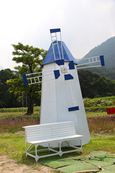 藍白相間的風車,很有異國味道,這座風車當然也是許多遊客拍照取景的地方,主人很有創意,知道怎麼吸引遊客來這裡。