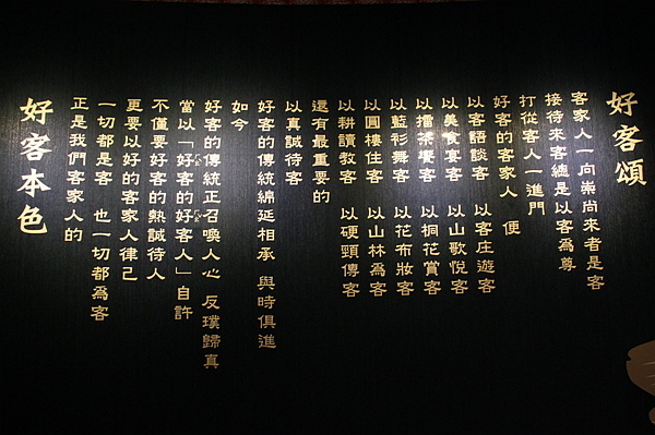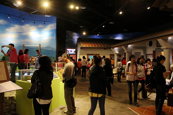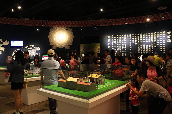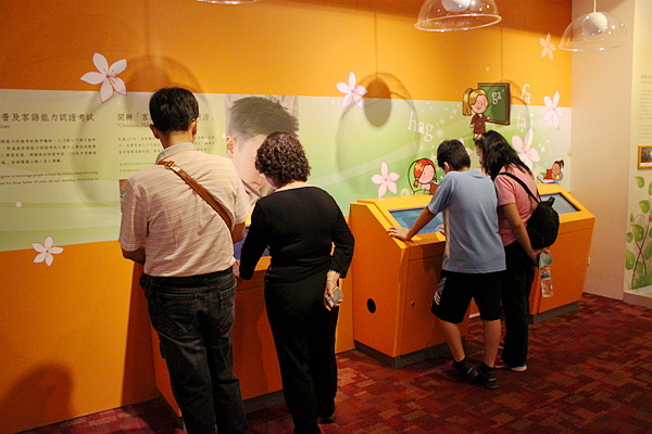 假日的遊客相當踴躍,有時候進入基本陳列室(常設展區)還要稍稍排隊,但不會花太久時間。基本陳列室裡,呈現客家文化中各具特色的語言、建築、產業、工藝、音樂及飲食等各個面向的文化內涵,配合生動的影音及多媒體互動展示手法,讓遊客有深入其境感受,館內許多模型都栩栩如生,很容易激起遊客的興趣與好奇,也藉此,讓我對客家文化與生活型態多了幾分認知。