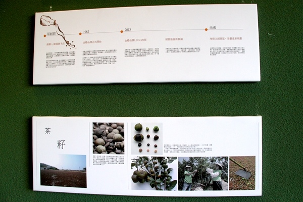 走進位於三灣永和山水庫南側的金椿茶油工坊廠區,這裡佔地約2.5公頃,除了廠房作業區、冷凍倉儲區、行政管理區以外,還有一大片的廣場,作為每年十月份曝曬茶花籽的場所。在廠區的另一端,種植有茶樹區(二十年生以上,也有百年以上的油茶樹)、茶花區,還有油桐花步道,欣賞五月雪。整個廠區除了依山傍水、綠意滿景外,前方還可欣賞到永和山水庫的柔美,後方可見層層山脈的磅礡氣勢,造就四季不同風格美景的視覺享受。
