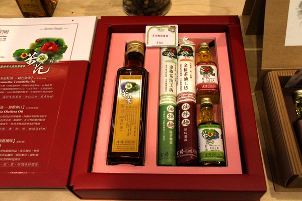 金椿茶油工坊將茶油依茶籽品種的不同分為三種,「紅花大菓茶花籽油」、「金花小菓茶花籽油」和「茶葉綠菓茶葉籽油」,各有不同的風味和料理特性,不同料理選用不同的茶油,更能和料理完美搭配,呈現茶油的美味。「紅花大菓茶花籽油」色澤金黃,發煙點高達223度,穩定性高,特別適合做煎、煮、炒、炸、拌等各種料理;「金花小菓茶花籽油」油色青綠如翡翠,富含天然葉綠素、茶多酚、α-生育醇及高單元不飽和脂肪酸80%以上,是最天然的抗氧化劑,可直接生飲,也可以扮沙拉,美味又養生;「茶葉綠菓茶葉籽油」色澤似瑪瑙,帶有濃郁的茶菓香氣,有不遜於花生及芝麻的香氣和滑順的口感,拌飯扮麵和各式調味都非常適合,也可拿來做藥膳料理,拌個幾匙就香氣四溢,讓人回味無窮。