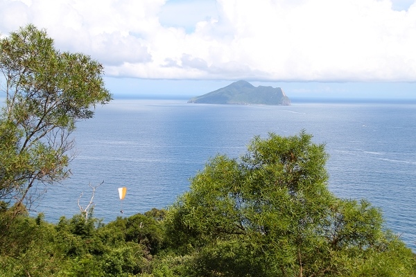 飛行傘基地就在城堡下方,因此時而可以捕捉到遊客駕著飛行傘出現在山腰飛向外澳海灘的精彩畫面。