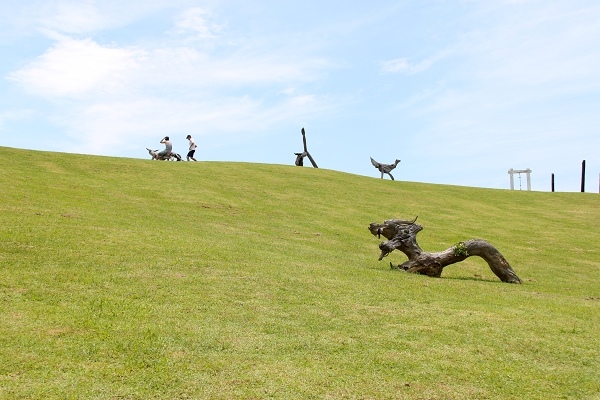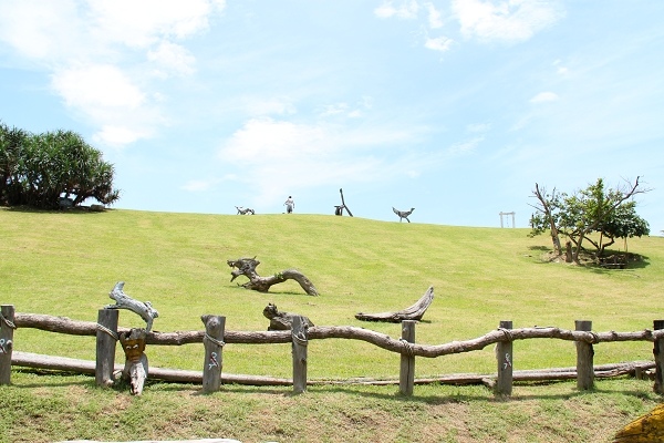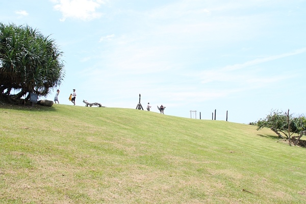 這裡的外圍有一處大斜坡,整片斜坡鋪滿了綠色草坪,從下往上看,綠地藍天景象,構成一幅美麗的自然圖畫,令人陶醉。
