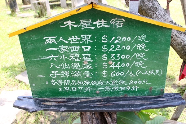 這裡不只有賞景、用餐,也涵蓋了住宿、露營等服務。園區裡有5間手工木屋,分為二人、四人、六人、八人與十五各一間,價位便宜,但沒有電視、沒有冷氣,喜歡寧靜、崇尚自然的朋友,或許可以挑戰一下。住在此,除了可以享受這裡的寧靜氛圍、聽海濤的聲音外,最大的樂趣是這裡幾乎完全沒有光害,夜裡滿天星斗,壯觀場面,令人讚嘆!