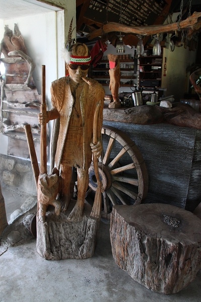 園區內處處可見男主人牛哥雕塑的木雕作品,不僅栩栩如生,也極富創意效果。