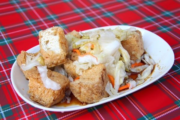 繼續前進,中山路上的「媽祖廟後面三哥臭豆腐」,臭豆腐外酥內嫩,超級好吃,也是備受顧客喜愛的平民美食。