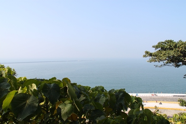 從東向迴廊拱圈往外望,可以看到高雄港碼頭與街景,有別有洞天的感覺。