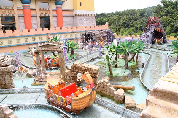 聖托里尼山城其實在三個遊樂區域的中間地帶,這一區是戶外遊樂設施最多的一個區域,像似刺激的飛天神戟、極限挑戰、超級水戰、海盜奇航、飛越愛琴海,都是膽子特大遊客的最愛。