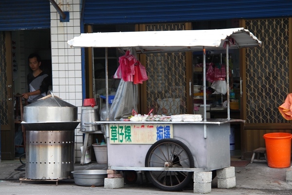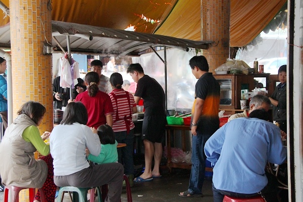 點好湯圓、麵線後,在攤位旁的一處屋簷前空地坐定,就可以大快朵頤了!