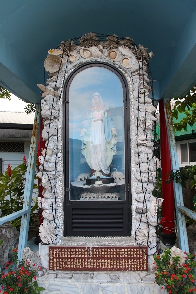 在福和成餅店斜對面,有一間成功天主堂(又稱中華聖母堂),可以順道進來走走。聚會的教堂外有一尊聖母瑪麗亞的雕像,仔細看雕像外框是用貝殼鑲起來的,更有趣的是聖母雕像披著一件披風,這件披風是阿美族原住民的傳統服飾,披在聖母瑪麗亞的身上,更顯慈祥!